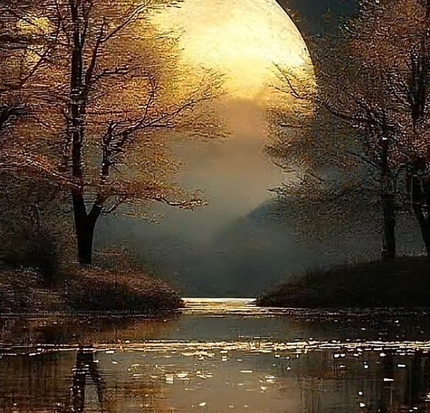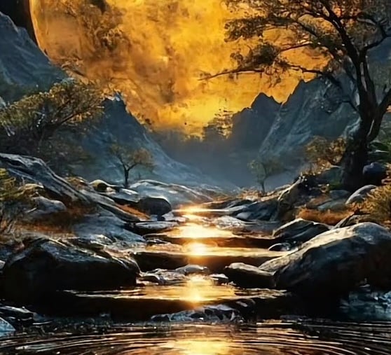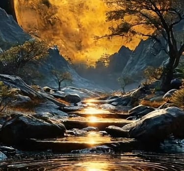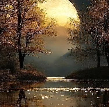 Experience the serene glow of the golden moon captured in breath-taking landscapes.